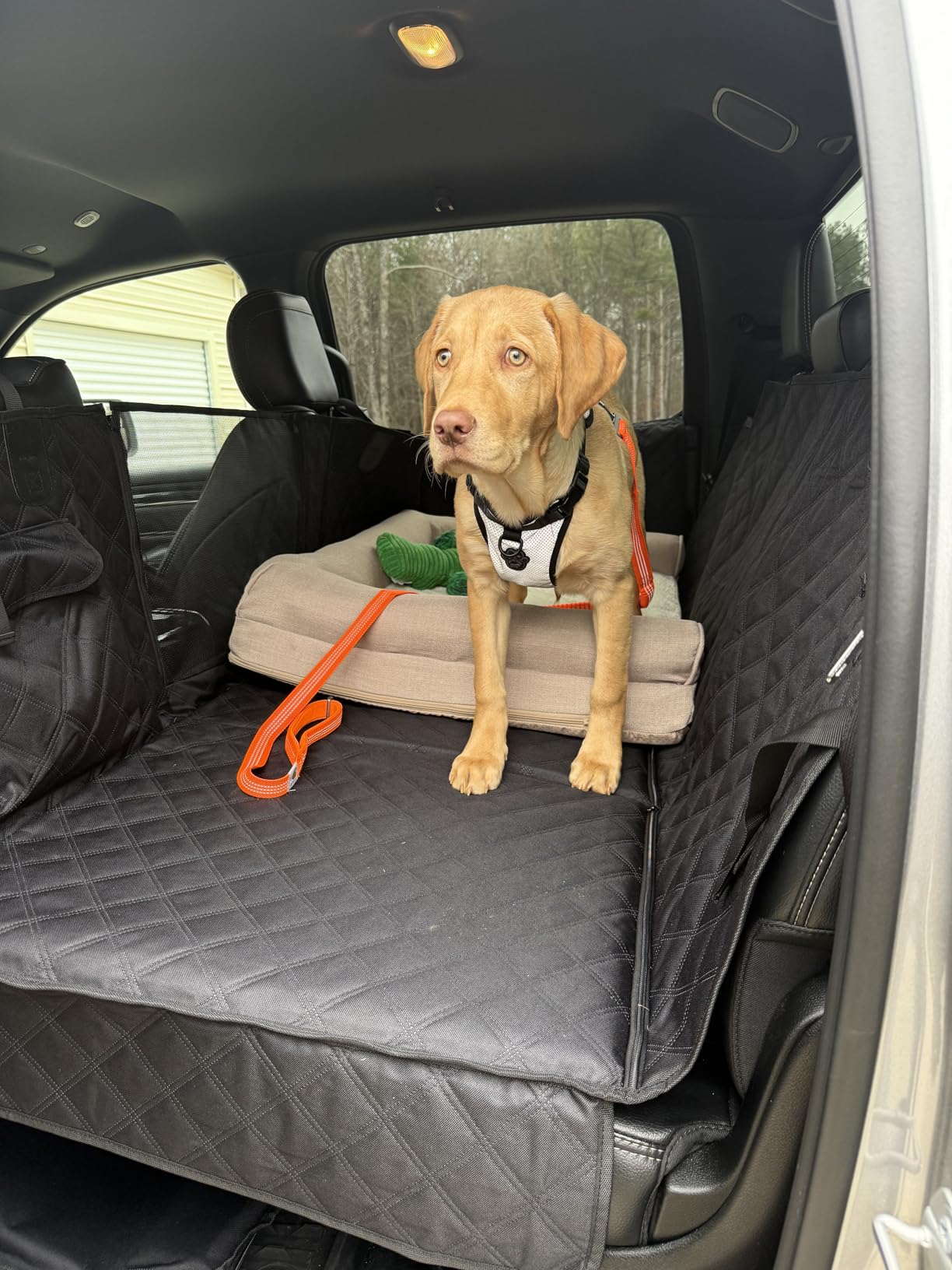 Yes — the CarLounge™ is built to hold up to 400 lbs and covers the entire back seat, giving even the biggest dogs plenty of safe, comfortable space.